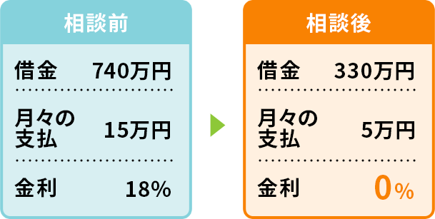 複数の業者から借金をして、いつの間にか700万円超えに。毎月の支払いが収入を上回っている状況で、収入を増やそうと副業も始めましたが体調を崩す始末…。お金のことが頭から離れられないくらい追い詰められていましたが、借金減額診断をしてみたところ利息カット・月々の返済も大幅に減額できました!これから生活を立て直し、毎月無理なく返済していきたいと思います。